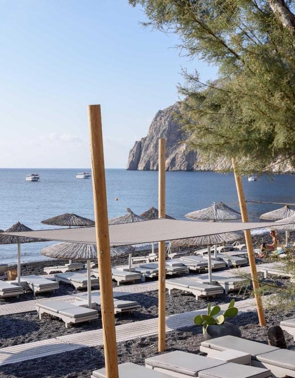 Culinary experiences range from buffet breakfasts to Mediterranean à la carte dinners, accompanied by live evening entertainment and cocktails at the Pool and Beach Bars . Wellness is taken to another level with a spa offering sauna, hammam, and massage services, while Day & Night activities cater to both children and adults. Located just 5 km from Santorini Airport and steps away from Kamari’s vibrant shops and tavernas, this resort delivers the perfect blend of relaxation and local flavor.