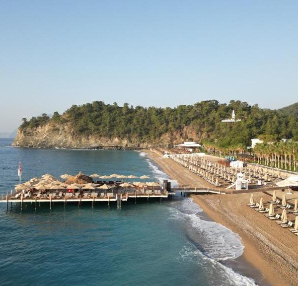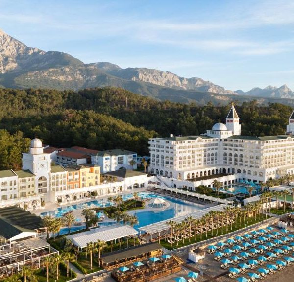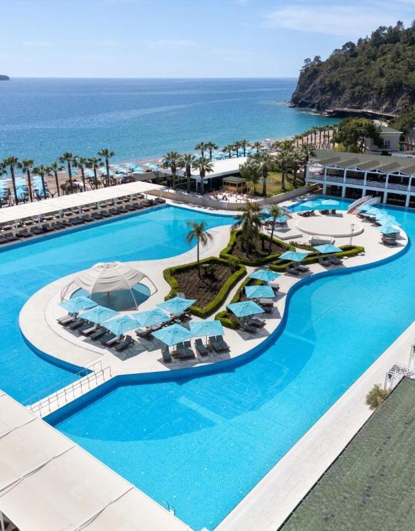 Amara Dolce Vita Luxury is a premium resort nestled in the pine-scented hills of Tekirova, near Kemer, Turkey. Spread over 200,000 m², the resort features five distinct buildings and 18 private villas, blending elegant architecture with lush garden surroundings. Guests can relax on the resort’s long private beach, stretch out on sun loungers, or dive into one of the many outdoor pools — including a dedicated aquapark with slides for both children and adults.