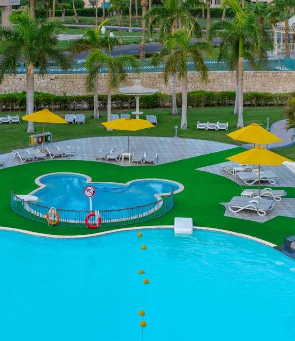 Aurora Oriental Resort Sharm El Sheikh is a spacious beachfront resort nestled in the scenic Nabq Bay area of Sharm El Sheikh, Egypt. With a broad stretch of sandy beach facing Tiran Island and the Red Sea, the property lies just minutes from entertainment hubs such as La Strada Mall, combining accessibility with a seaside escape. The resort features three outdoor swimming pools—including children’s splash areas—and a generous sun terrace, offering plenty of relaxation space for guests of all ages.