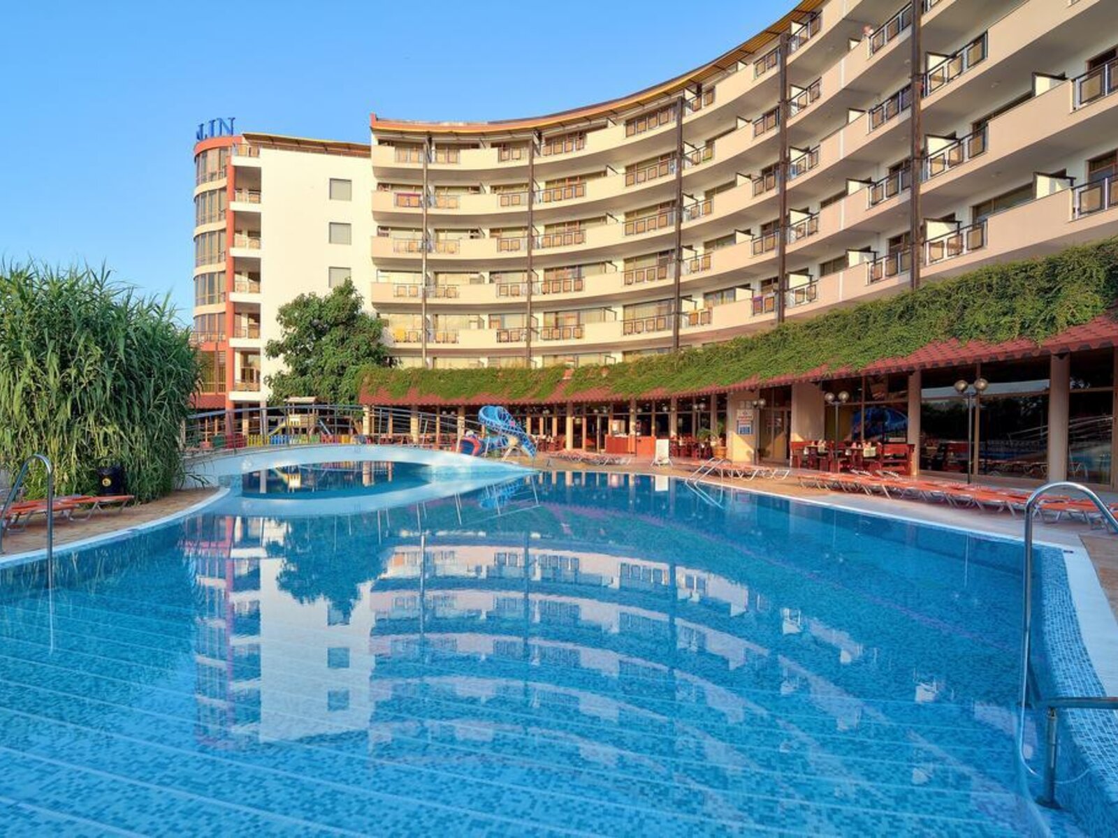 Berlin Green Park Hotel 4★ in Golden Sands offers comfortable accommodations amidst lush greenery, just 300 meters from the beach, featuring spacious rooms, all-inclusive dining, pools, and family-friendly amenities for a relaxing seaside getaway.