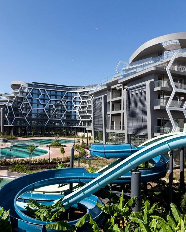 The hotel features an extensive sport and wellness infrastructure: multiple outdoor pools, an indoor pool, water slides, spa facilities with Turkish bath (hamam), sauna and steam room, and a fitness centre. Rooms are modern, air-conditioned and equipped with balconies, offering garden, pool or sea/river views. With its All Inclusive Ultra concept, private beach, wellness and vibrant amenities, Bosphorus Sorgun Hotel promises a full holiday experience on the Turkish Riviera.