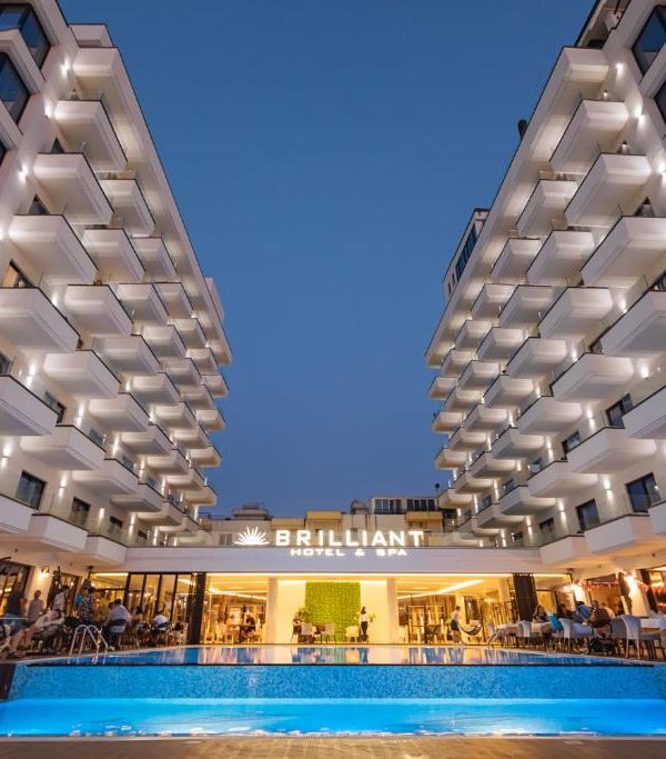 The hotel’s two on-site restaurants serve a variety of Mediterranean and international dishes, complemented by a selection of fine wines and cocktails at the poolside bar. Additional amenities include a fitness center, children’s playground, conference facilities, and free Wi-Fi throughout the property. With its combination of natural beauty, modern comforts, and exceptional service, Brilliant Hotel & SPA 5★ provides an ideal retreat for both leisure and business travelers.