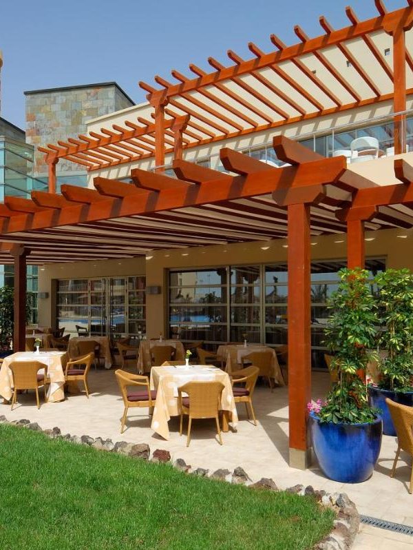 There are various restaurants on site, including Tindaya Buffet and El Arrecife, which serves Italian cuisine. The Chiringuito Restaurant and Bar, located on a small island opposite the hotel, serves seafood dishes.