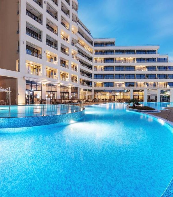 Four Points by Sheraton Sunny Beach 4★ is a contemporary beachfront hotel located just 70 meters from the golden sands of Sunny Beach, Bulgaria. The hotel boasts 274 elegantly designed rooms and suites, each equipped with modern amenities such as air conditioning, flat-screen TVs, minibars, and private balconies offering stunning sea or city views. Guests can enjoy a variety of on-site facilities, including indoor and outdoor swimming pools, a children’s pool, and a well-equipped fitness center.