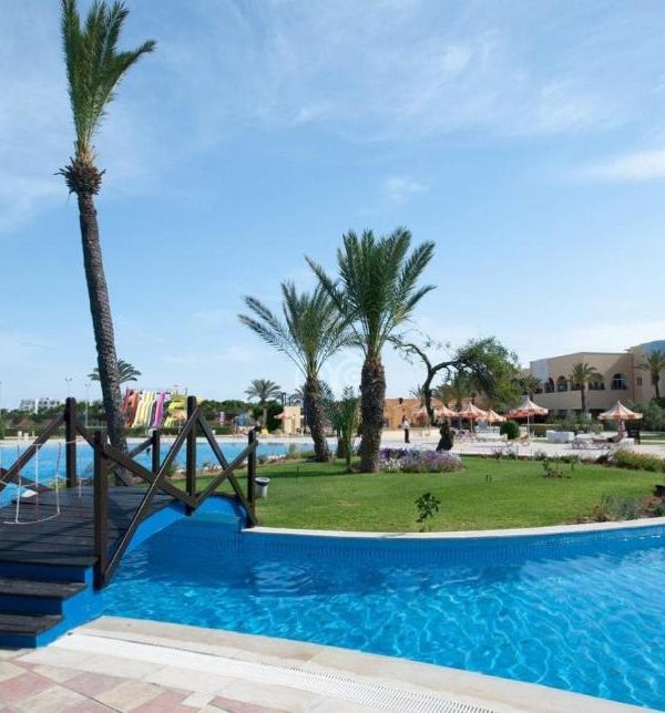 Hotel Nour Palace Resort & Thalasso Mahdia 5⭐ is a luxurious beachfront resort in Mahdia, Tunisia, offering multiple pools, a water park, spa, fitness center, and private beach access.