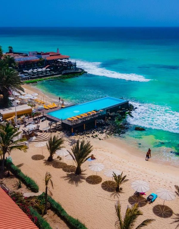Perched on the edge of Santa Maria Beach on Sal Island, Hotel Odjo d’água 4★ is a family-run boutique hotel that captures the essence of Cape Verdean culture and hospitality. Built on the historic Ponte do Porfirio, the hotel offers breathtaking views of the Atlantic Ocean and the Bay of Santa Maria, making it a sought-after destination for travelers seeking both relaxation and cultural immersion.