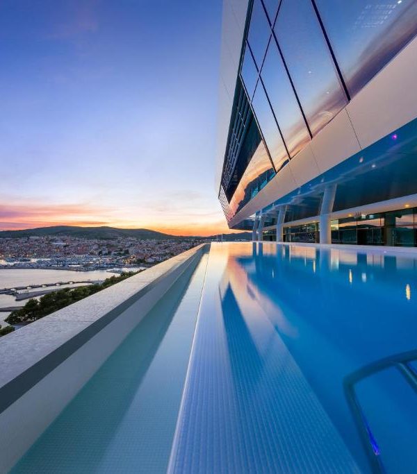 Stay at Hotel Olympia Sky 4⭐ in Vodice, Croatia – an adults-only retreat with rooftop infinity pool, direct beach access, panoramic sea views, and fine dining in a luxury setting.