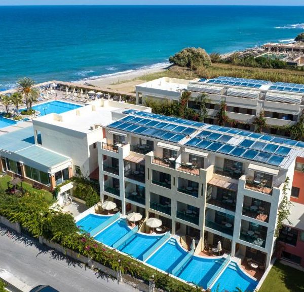 Situated on the sandy shores of Kallithea Bay, Hydramis Palace 5⭐ is a refined beachfront resort combining classical elegance with modern comforts. The hotel boasts 346 stylish rooms and suites—each equipped with air conditioning, private balcony or terrace (many overlooking the sea or pool), minibars, satellite TV, and complimentary Wi‑Fi. Guests can unwind across several outdoor pools, including a dedicated children’s pool, as well as an indoor heated pool. Spa facilities feature a Turkish bath, steam room, sauna, and a range of massage and beauty therapy options.