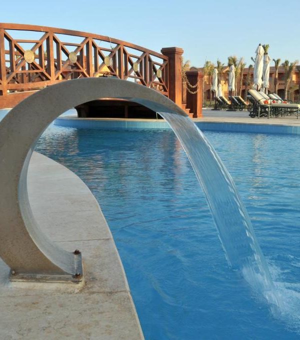 After a busy day, guests can order a glass of their favorite drink and relax by the pool under the Egyptian sun.