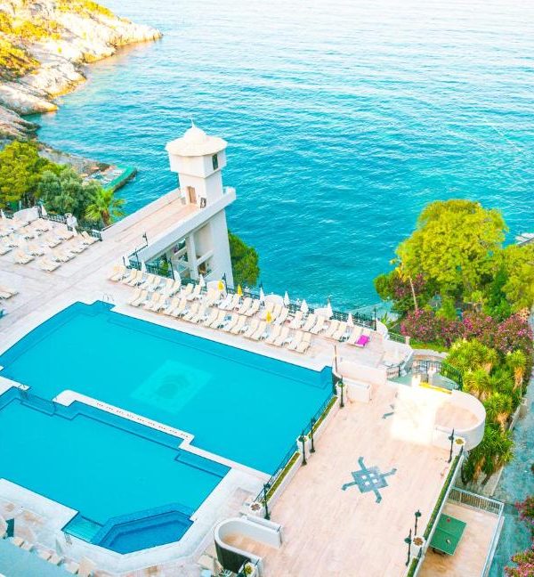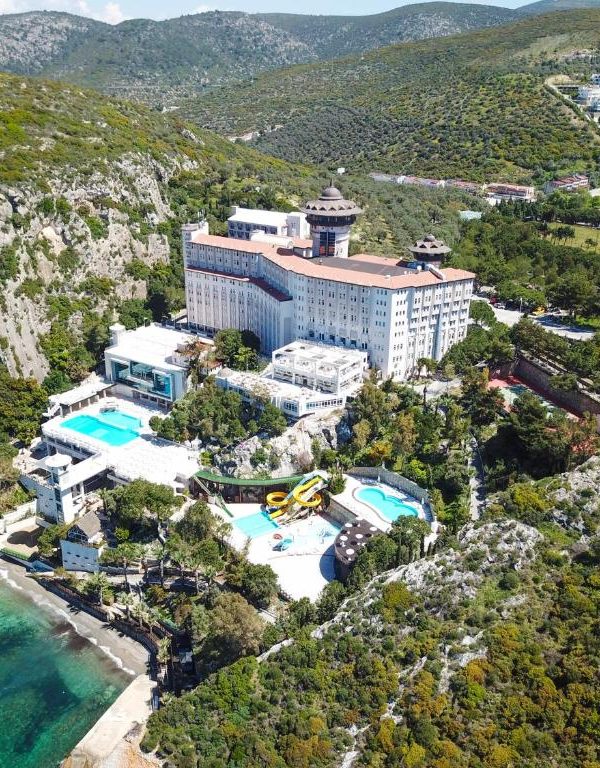 Ladonia Hotels Adakule 5⭐ is a stylish, family-friendly resort nestled in its own private bay near Kuşadası on the Turkish Aegean coast. Set across beautifully landscaped grounds, the hotel blends elegant architecture with panoramic sea views. Its private beach and terraced sun decks offer direct access to the Aegean, while the aquapark—with water slides—and multiple outdoor pools, including a children’s pool, create a fun and relaxing seaside escape. Sport enthusiasts can enjoy tennis, beach volleyball, scuba diving, and other water sports, while evenings come alive with live music, a nightclub, and family entertainment.