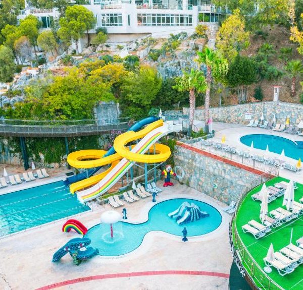 Ladonia Hotels Adakule 5⭐ in Kusadası features a private beach, aquapark, multiple pools, spa, fitness center, and diverse sports and entertainment facilities.