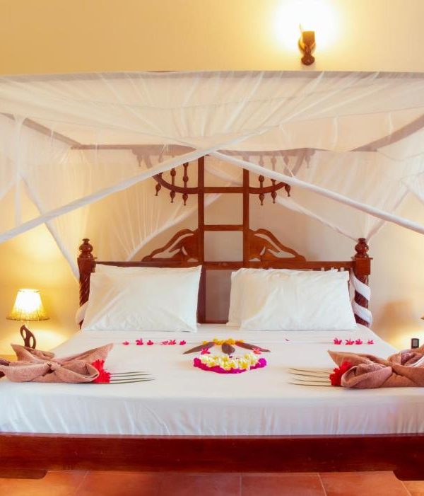 Guests can relax by the pool, indulge in spa treatments, or savor international and local dishes at the beachfront restaurant. With its blend of Zanzibari charm and modern luxury, Mandarin Resort is perfect for couples, honeymooners, and travelers seeking a refined beachside escape.