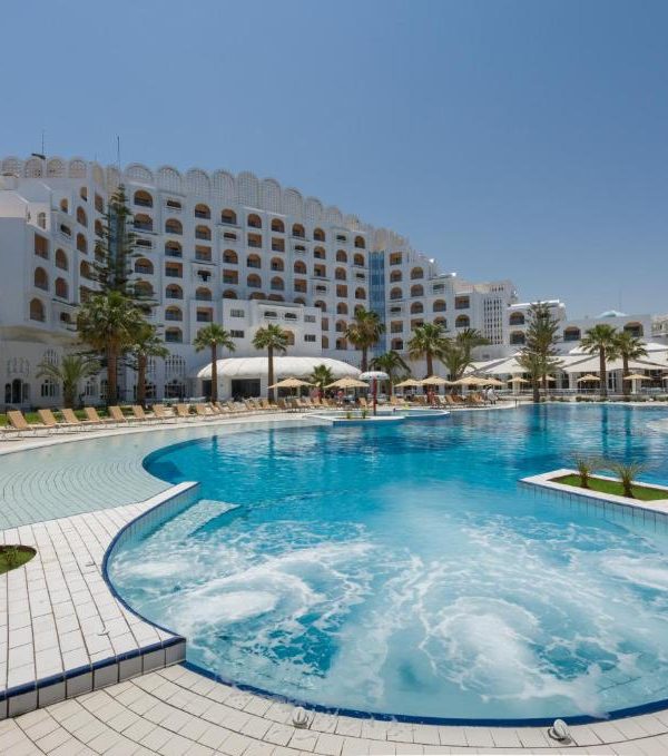 Enjoy elegant beachfront luxury at Marhaba Palace 5★ – All Inclusive. Located in Port El Kantaoui, it offers fine dining, pools, and top-tier service.