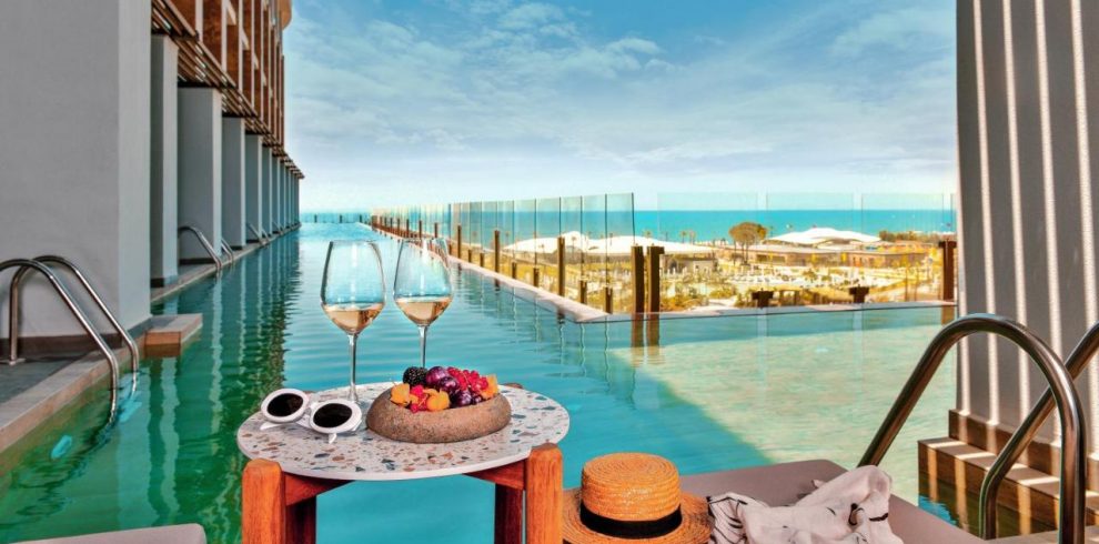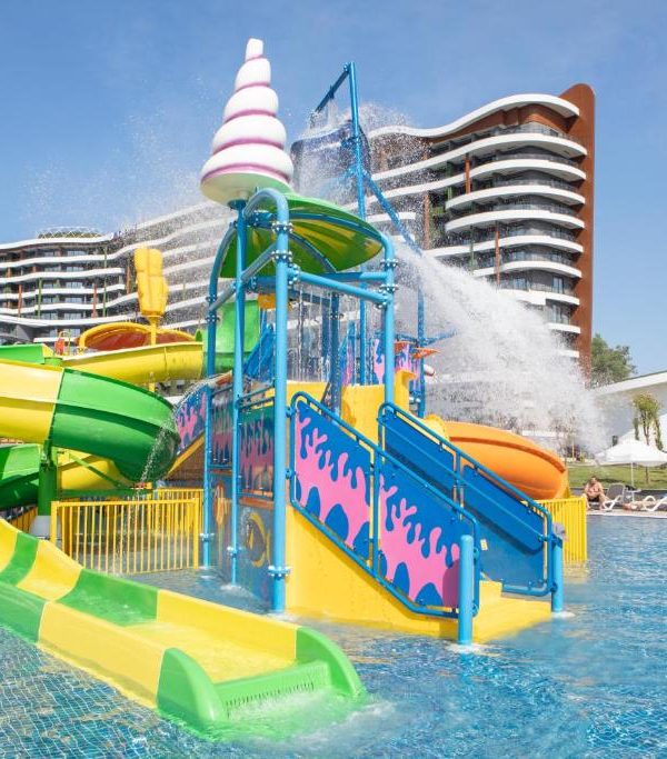 Mylome Luxury Hotel & Resort 5⭐ is a contemporary beachfront resort located in Okurcalar, Alanya, Turkey. Opened in 2020, the hotel boasts a sleek, modern design and offers a variety of accommodations, including swim-up rooms with direct pool access. Guests can enjoy five outdoor pools, an indoor pool, a children’s pool, and an exciting aquapark with slides suitable for all ages. The resort’s private beach area provides sun loungers and umbrellas, ensuring a relaxing seaside experience.