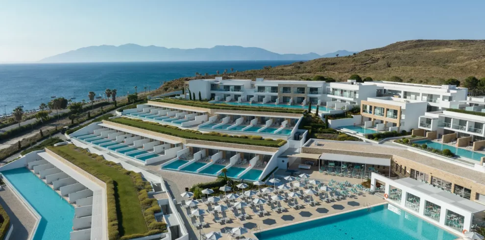 Mylome Luxury Hotel & Resort 5⭐, opened in 2020 in Okurcalar, offers a private beach, 5 outdoor pools, spa, fitness centre, and diverse dining options.