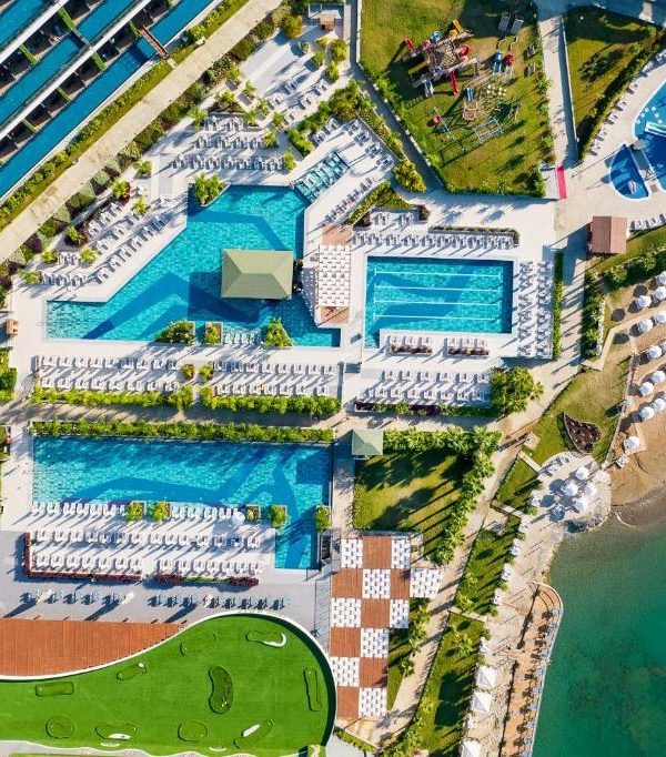 The hotel’s spa and wellness centre features a sauna, steam room, hot tub, and a fully equipped fitness centre. Dining options include six restaurants offering a range of cuisines, complemented by six bars and three beach bars serving a variety of beverages. Entertainment is provided through themed dinners, live music, and a nightclub. With its combination of modern amenities, luxurious accommodations, and exceptional service, Mylome Luxury Hotel & Resort 5⭐ promises an unforgettable stay on the Turkish Riviera.