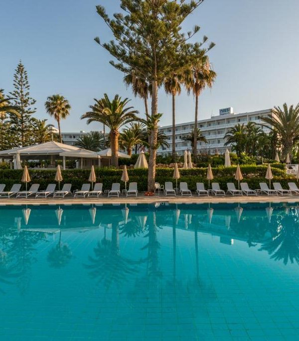 Nissi Beach Resort 4⭐ is nestled on a beautiful 500 m stretch of white-sand beach in Ayia Napa, Cyprus, surrounded by lush tropical gardens. The resort spans a vast 100 000 m² property and offers three outdoor pools—including a free-form main pool with bridges and waterfalls—and a children’s pool, alongside spacious sun terraces and direct beach access with loungers and umbrellas exclusively for guests. A heated indoor pool, sauna, steam bath, and comprehensive spa ensure relaxation year-round, while a full health club and multiple sports facilities, including tennis, beach volleyball and water sports, cater to those seeking more active pursuits.