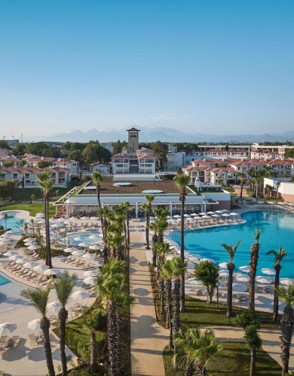 Paloma Grida 5⭐ is a luxurious beachfront resort in Belek, Turkey, featuring multiple pools, a water park, spa, fitness center and private beach area.