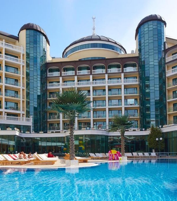 Dining is an experience in itself: the vast main buffet restaurant (850 seats) serves global cuisine, while snack bars and a lobby lounge offer light bites and drinks throughout the day and night. A sky bar with sea vistas completes the scene. Families will appreciate the supervised kids’ club, playgrounds, game rooms, and regular poolside activities tailored for children . Situated just 70 meters from the shore and a 5-minute walk from the Old Town of Nessebar, this resort offers prime convenience. Bourgas Airport is only 30 km away, making transfers swift and easy