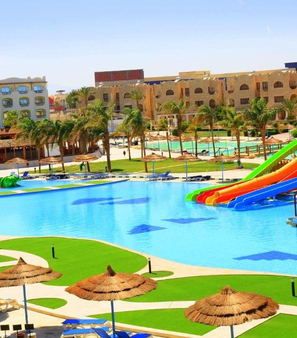 Royal Lagoons Resort 5⭐ in Hurghada offers family-friendly fun with pools, aqua park, all-inclusive dining, and a short walk to the beach — perfect for couples too!